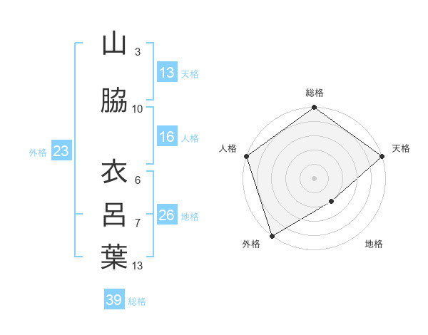 山脇 衣呂葉さんを姓名の画数から五運を鑑定