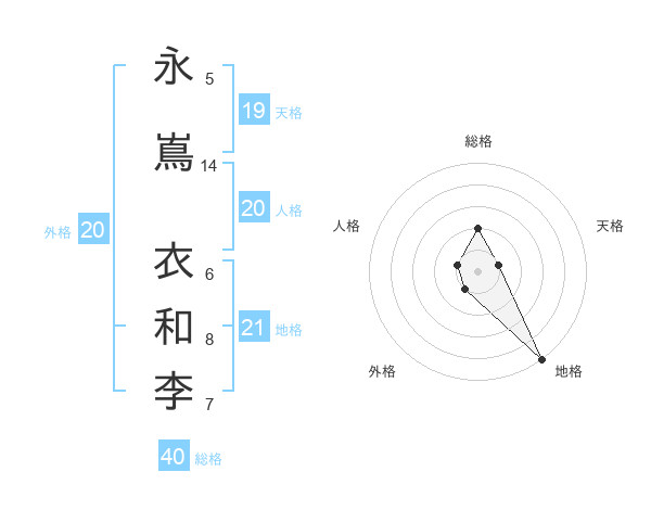 永嶌 衣和李さんを姓名の画数から五運を鑑定