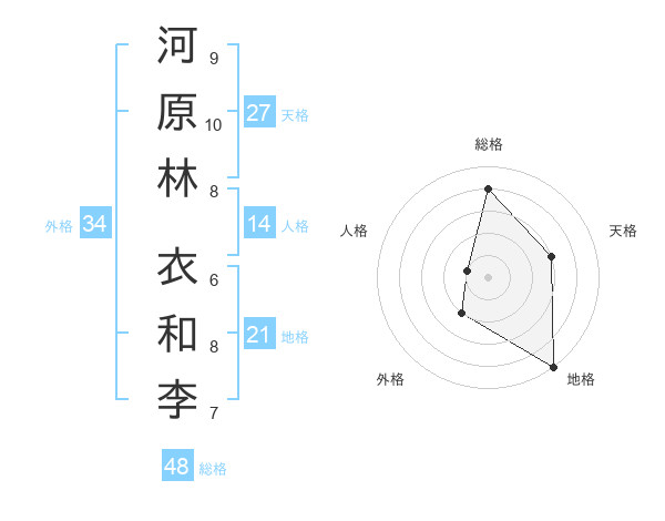 河原林 衣和李さんの総格は48画の4点!