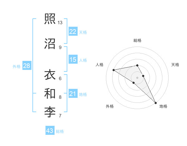 照沼 衣和李さんを姓名の画数から五運を鑑定