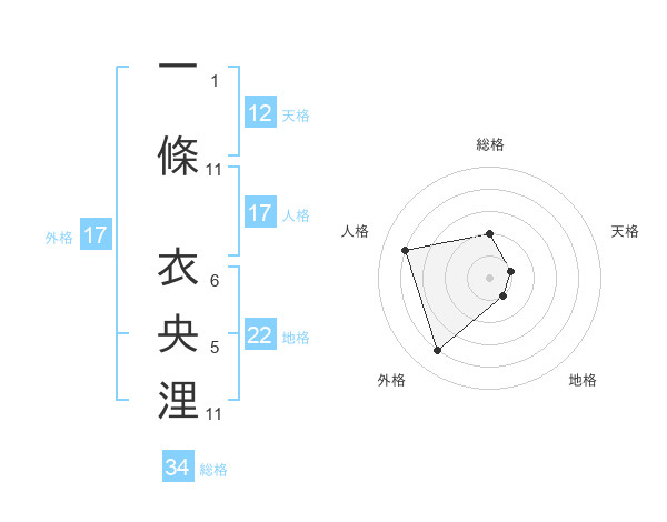 一條 衣央浬さんを姓名の画数から五運を鑑定