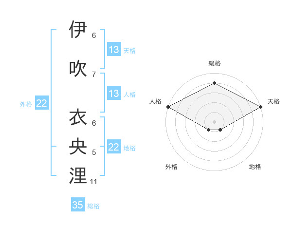 伊吹 衣央浬さんを姓名の画数から五運を鑑定