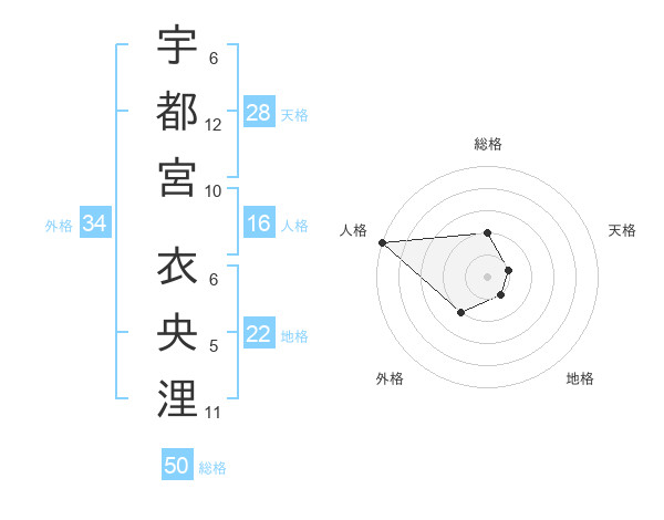 宇都宮 衣央浬さんを姓名の画数から五運を鑑定