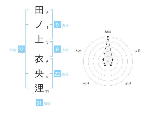 田ノ上 衣央浬さんを姓名の画数から五運を鑑定