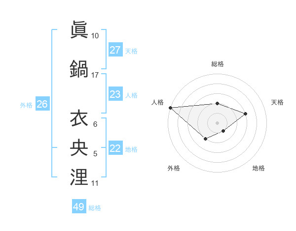 眞鍋 衣央浬さんを姓名の画数から五運を鑑定
