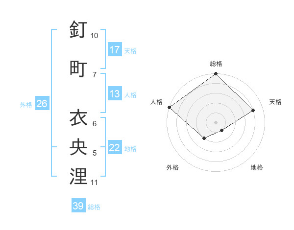 釘町 衣央浬さんの総格は39画の5点!