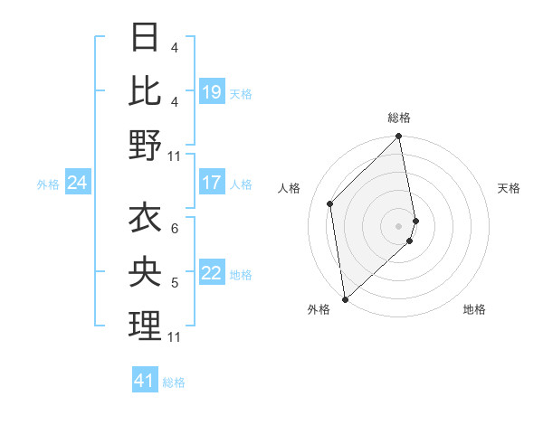 日比野 衣央理さんを姓名の画数から五運を鑑定