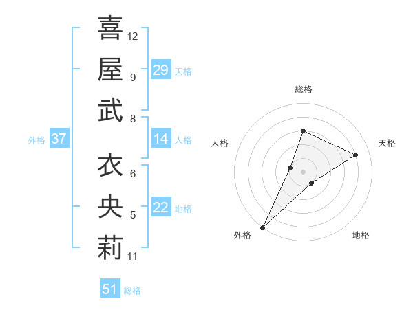 喜屋武 衣央莉さんを姓名の画数から五運を鑑定