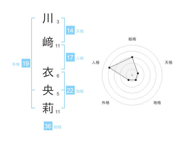 川﨑 衣央莉さんを姓名の画数から五運を鑑定