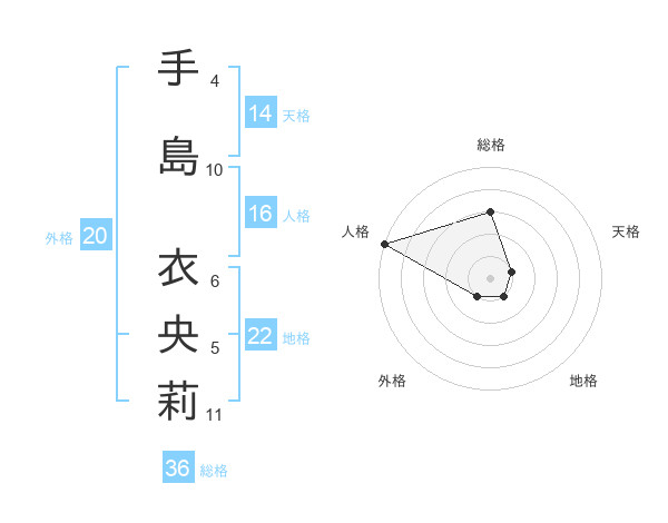 手島 衣央莉さんを姓名の画数から五運を鑑定