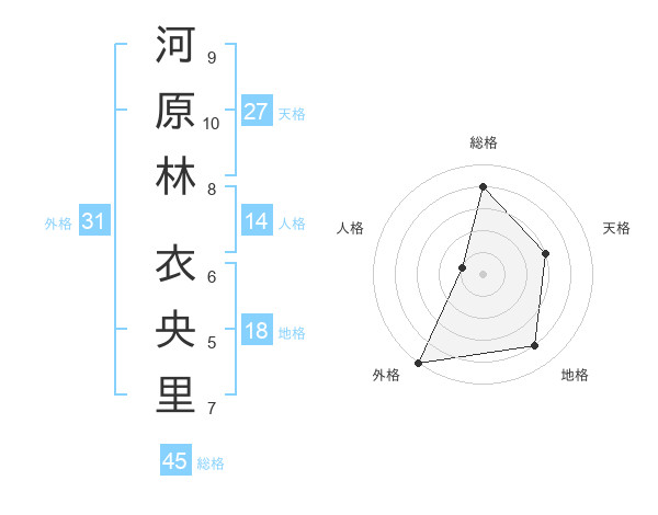 河原林 衣央里さんの総格は45画の4点!