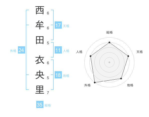 西牟田 衣央里さんを姓名の画数から五運を鑑定