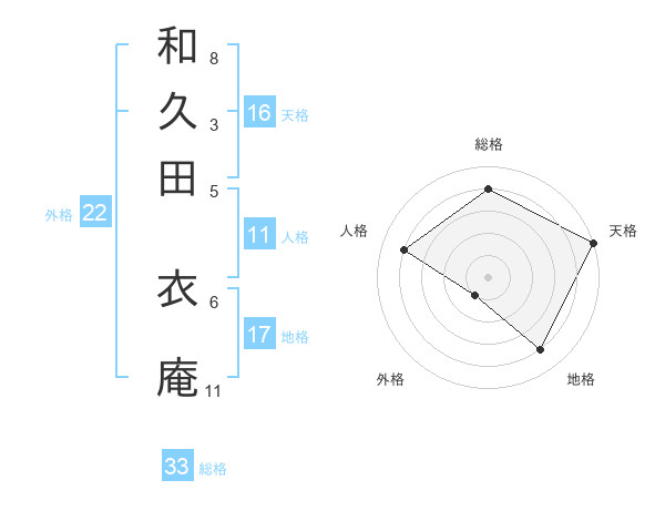 和久田 衣庵さんの総格は33画の4点!
