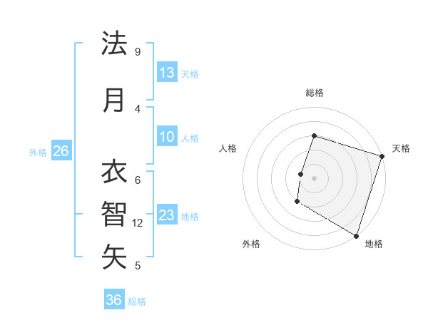 法月 衣智矢さんを姓名の画数から五運を鑑定