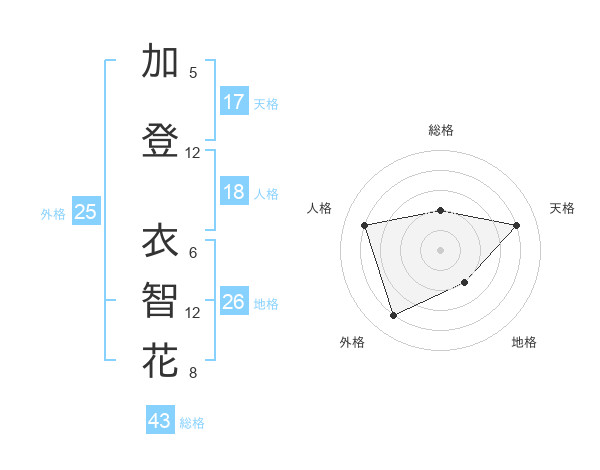 加登 衣智花さんを姓名の画数から五運を鑑定