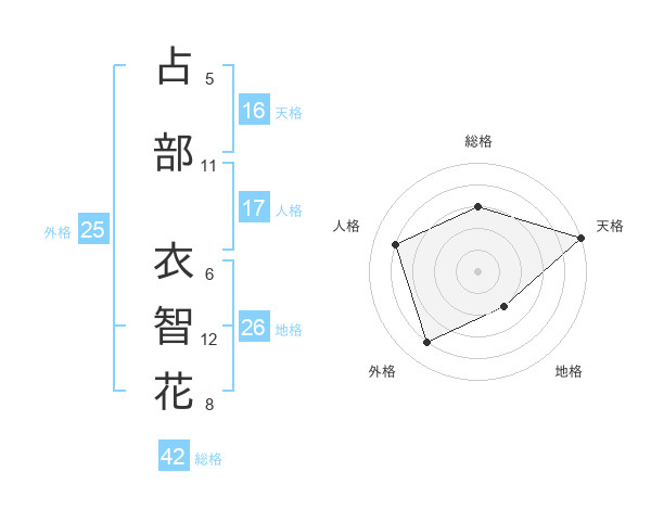 占部 衣智花さんを姓名の画数から五運を鑑定