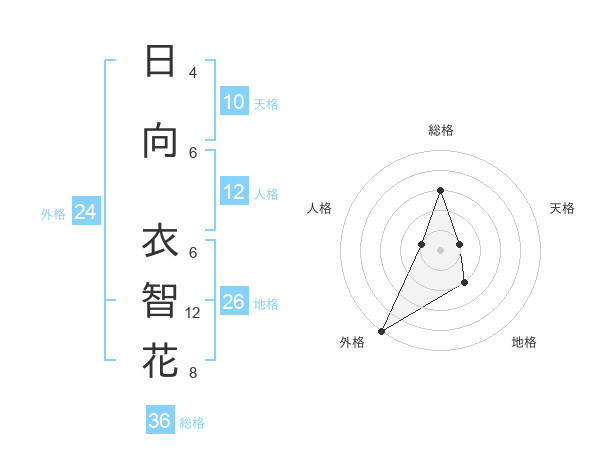 日向 衣智花さんを姓名の画数から五運を鑑定