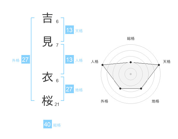 吉見 衣桜さんを姓名の画数から五運を鑑定