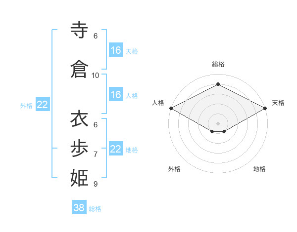 寺倉 衣歩姫さんを姓名の画数から五運を鑑定