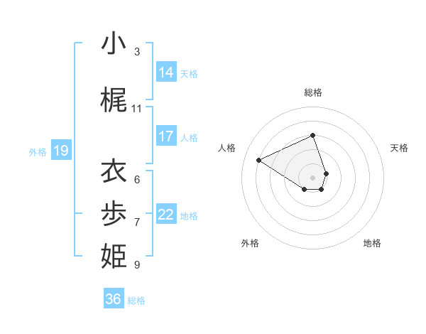 小梶 衣歩姫さんを姓名の画数から五運を鑑定
