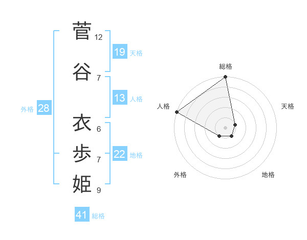 菅谷 衣歩姫さんの総格は41画の5点!
