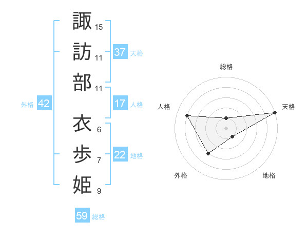 諏訪部 衣歩姫さんの天格は37画の5点!