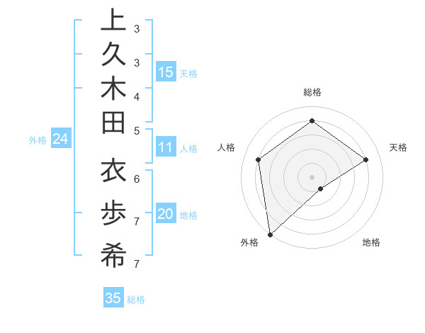上久木田 衣歩希さんを姓名の画数から五運を鑑定