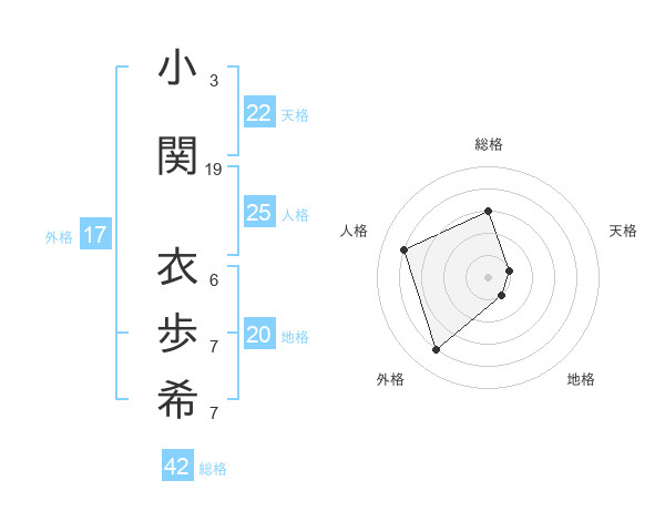 小関 衣歩希さんを姓名の画数から五運を鑑定
