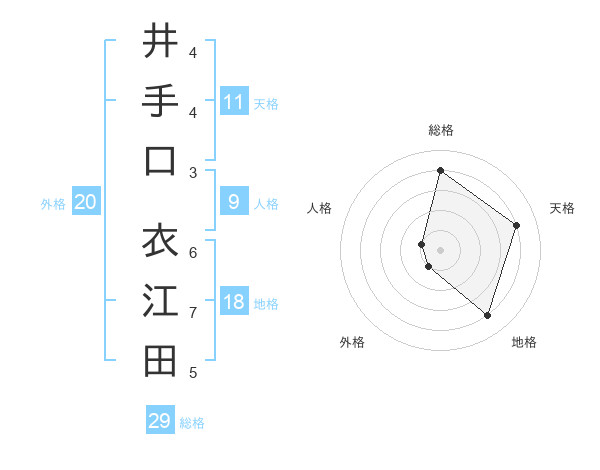 井手口 衣江田さんを姓名の画数から五運を鑑定