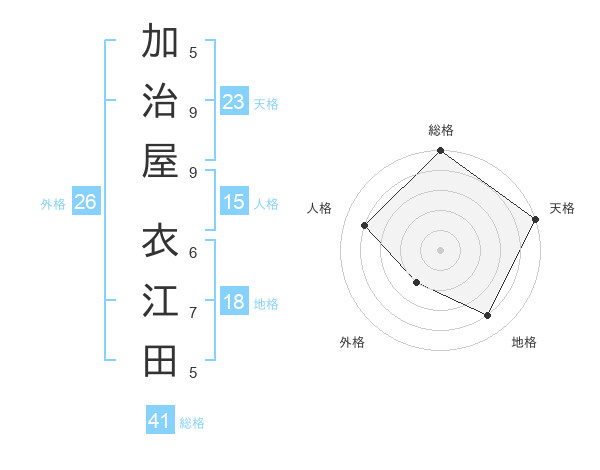 加治屋 衣江田さんを姓名の画数から五運を鑑定