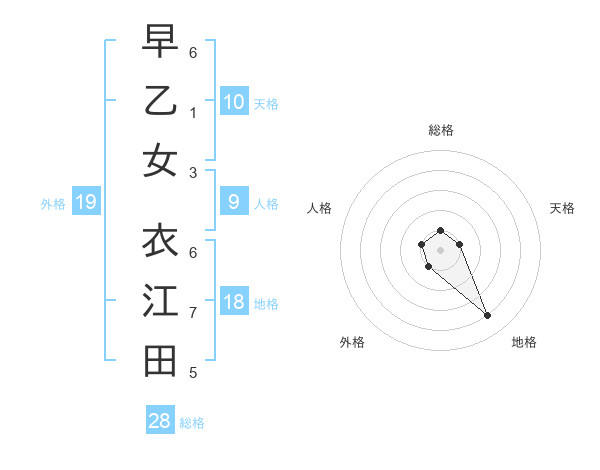 早乙女 衣江田さんを姓名の画数から五運を鑑定