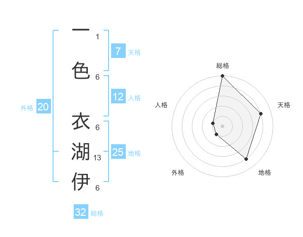 一色 衣湖伊さんを姓名の画数から五運を鑑定