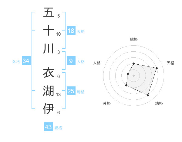 五十川 衣湖伊さんの総格は43画の2点!