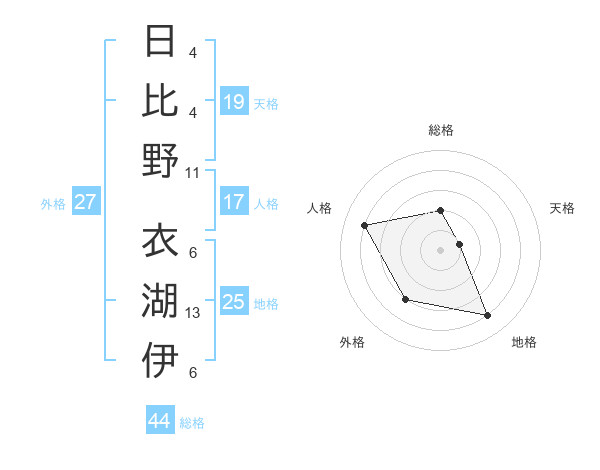 日比野 衣湖伊さんを姓名の画数から五運を鑑定
