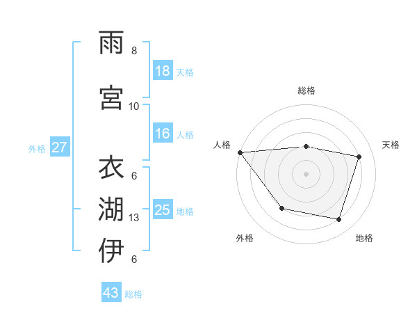 雨宮 衣湖伊さんを姓名の画数から五運を鑑定