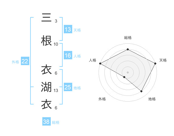 三根 衣湖衣さんの総格は38画の4点!