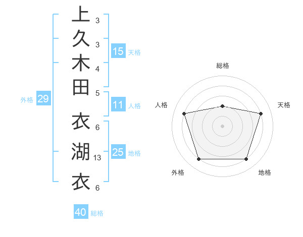 上久木田 衣湖衣さんを姓名の画数から五運を鑑定