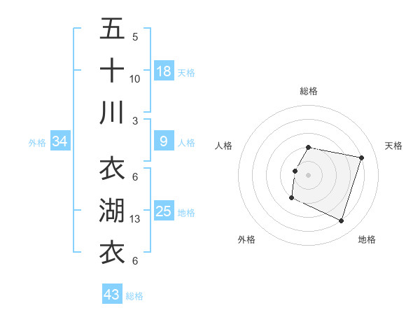 五十川 衣湖衣さんを姓名の画数から五運を鑑定