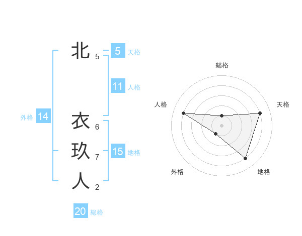 北 衣玖人さんの総格は20画の1点!