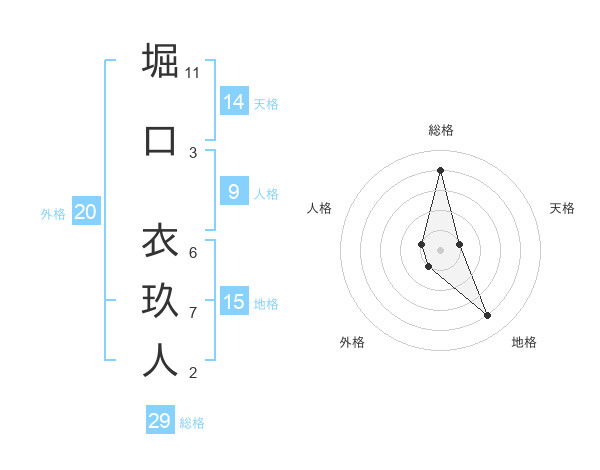 堀口 衣玖人さんの総格は29画の4点!