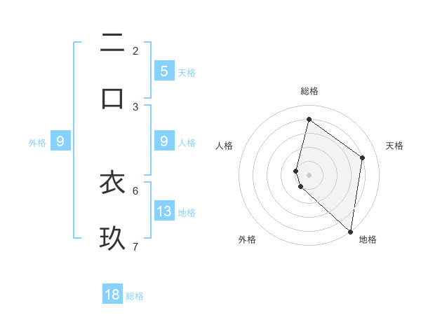 二口 衣玖さんの天格は5画の4点!