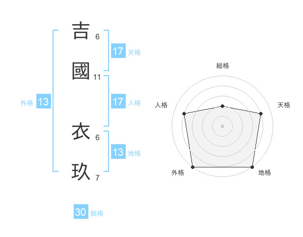 吉國 衣玖さんの地格は13画の5点!