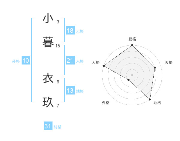 小暮 衣玖さんを姓名の画数から五運を鑑定
