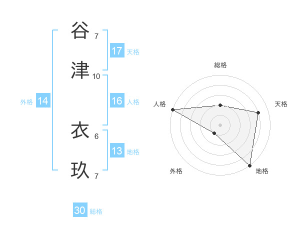 谷津 衣玖さんの総格は30画の2点!