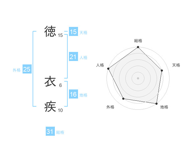 徳 衣疾さんを姓名の画数から五運を鑑定