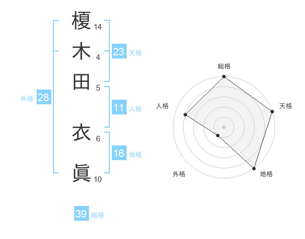 榎木田 衣眞さんを姓名の画数から五運を鑑定