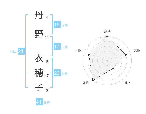 丹野 衣穂子さんを姓名の画数から五運を鑑定
