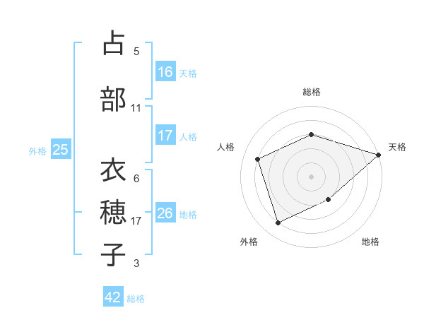 占部 衣穂子さんを姓名の画数から五運を鑑定