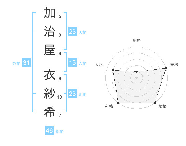 加治屋 衣紗希さんの天格は23画の5点