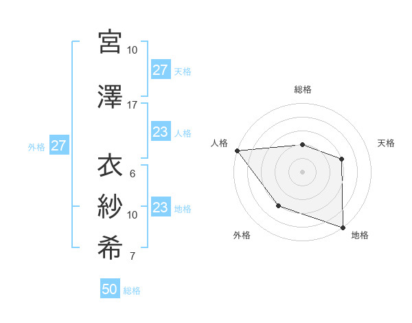 宮澤 衣紗希さんを姓名の画数から五運を鑑定